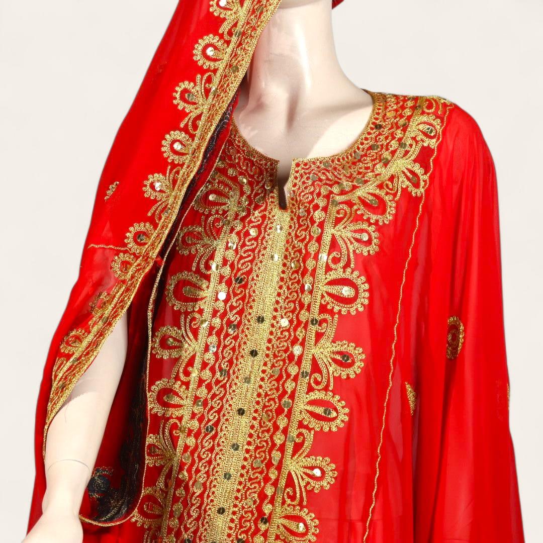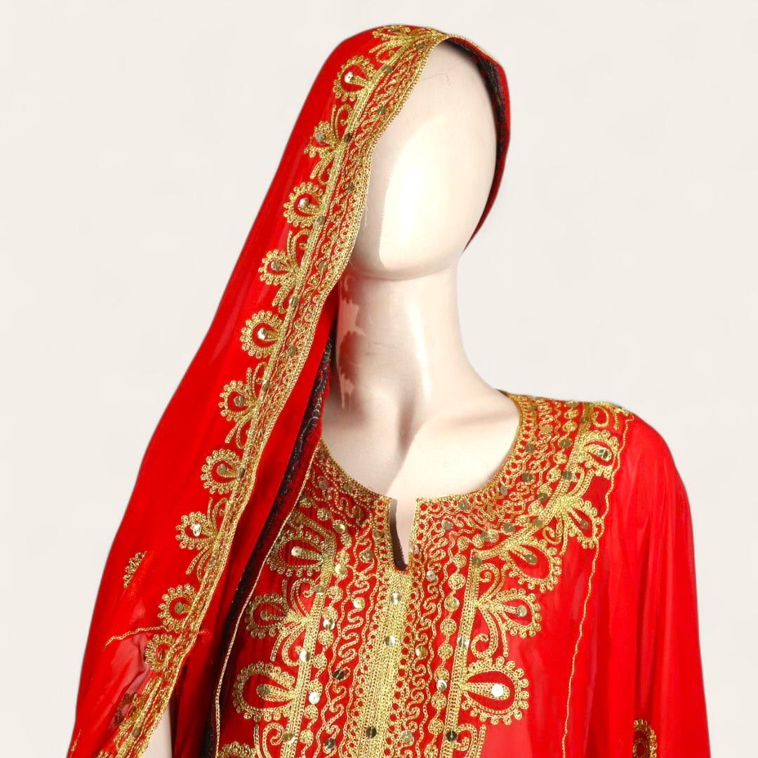 ثوب كورار أحمر مع ذهبي