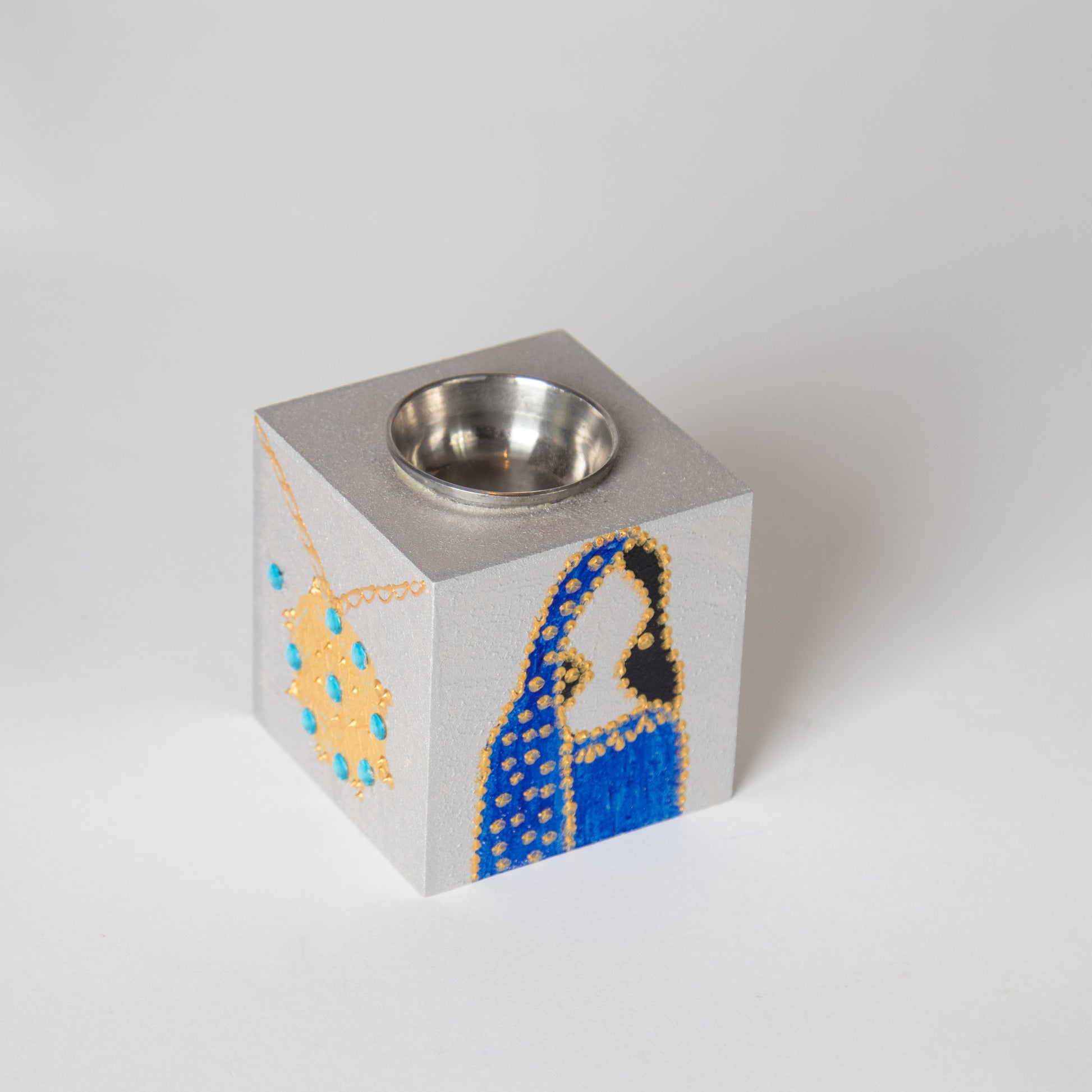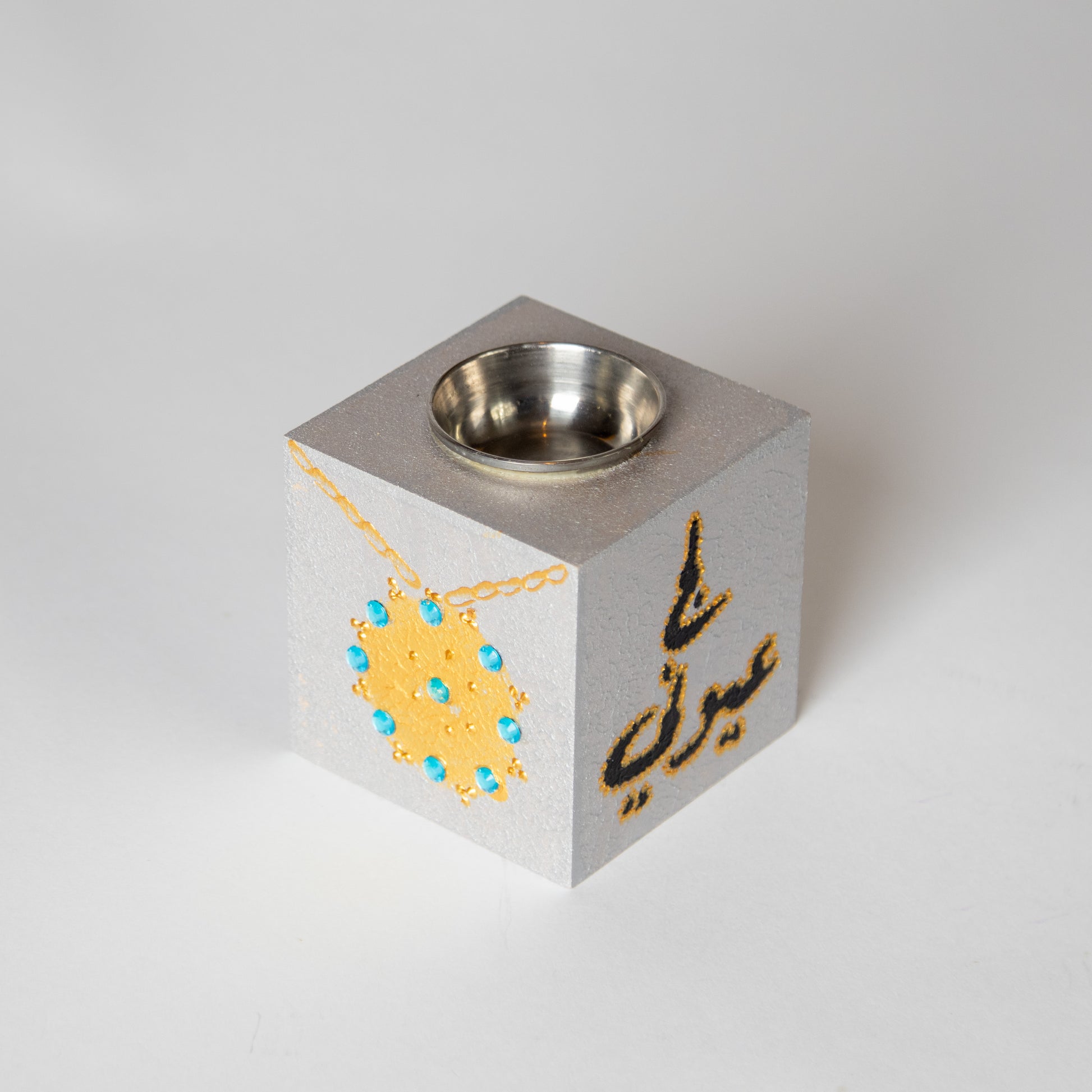 الحجم: قطره 8 سم وارتفاعه 9 سم