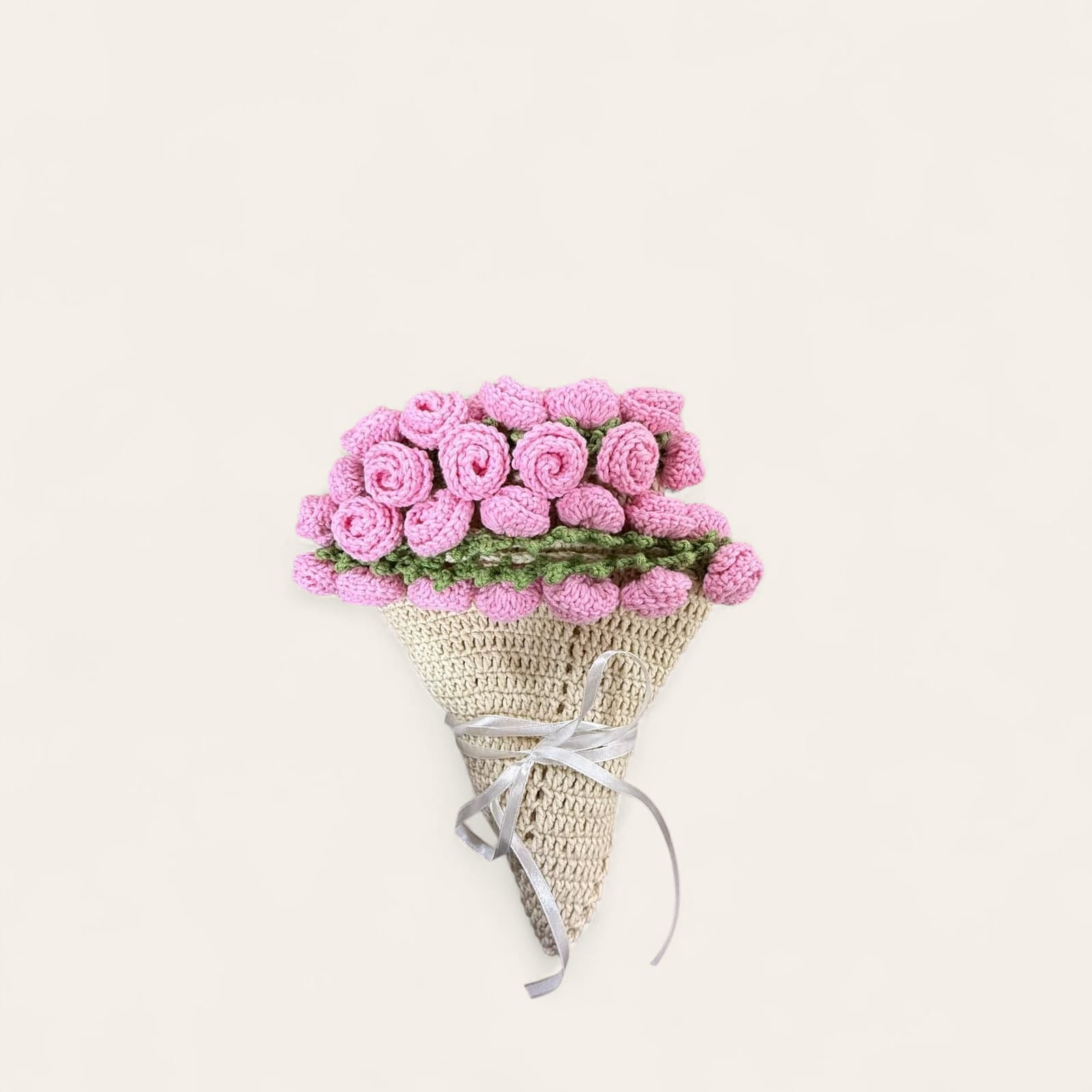 مفرش بالون البيج الفاتح مع ورد الجوري بالكروشيه