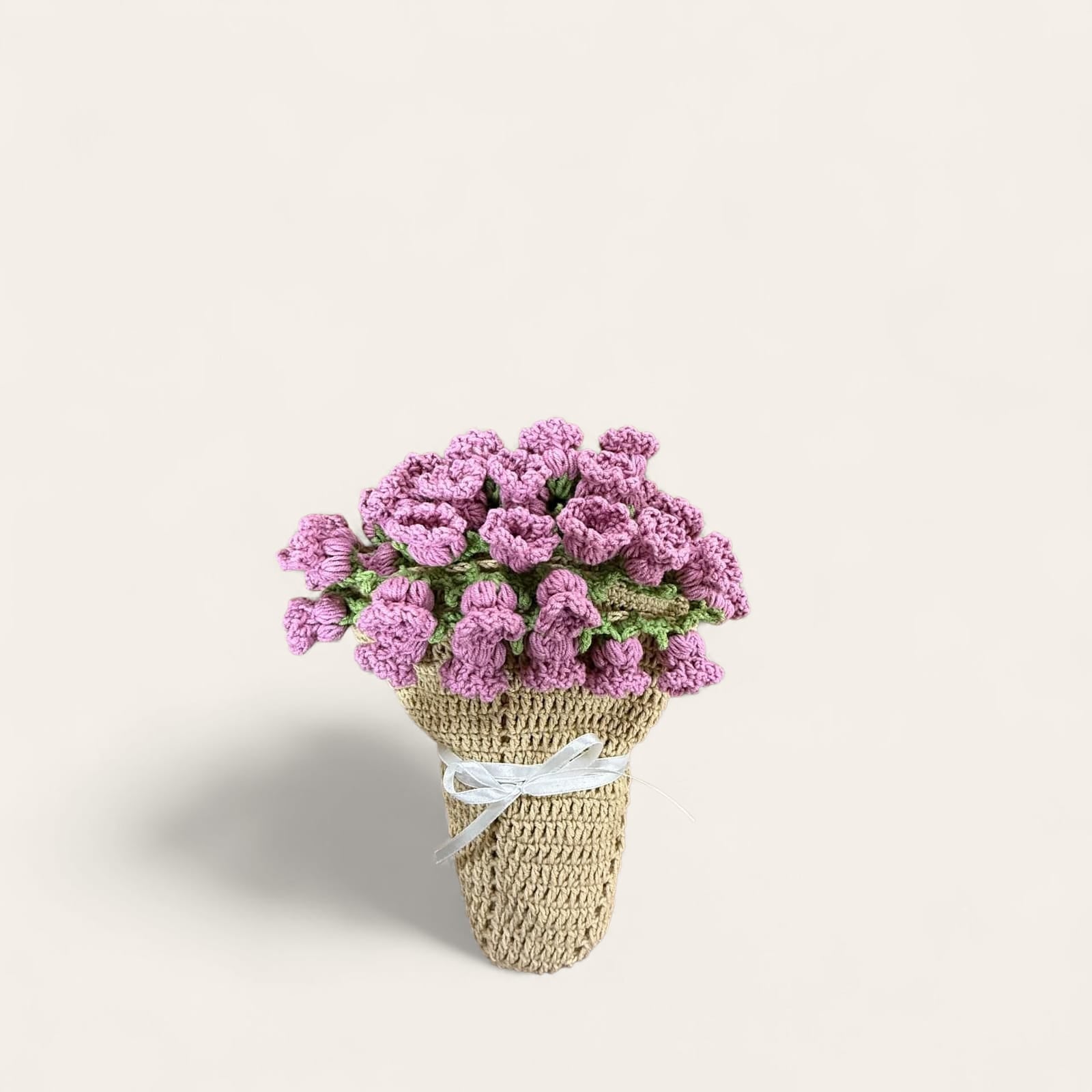 مفرش بالون البيج الغامق مع ورد التوليب بالكروشيه