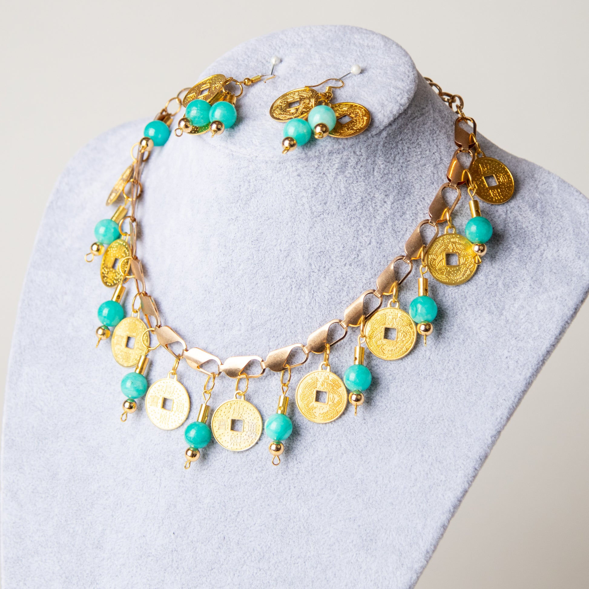 معدن مطلي ذهبي مع حجارة تركوازي