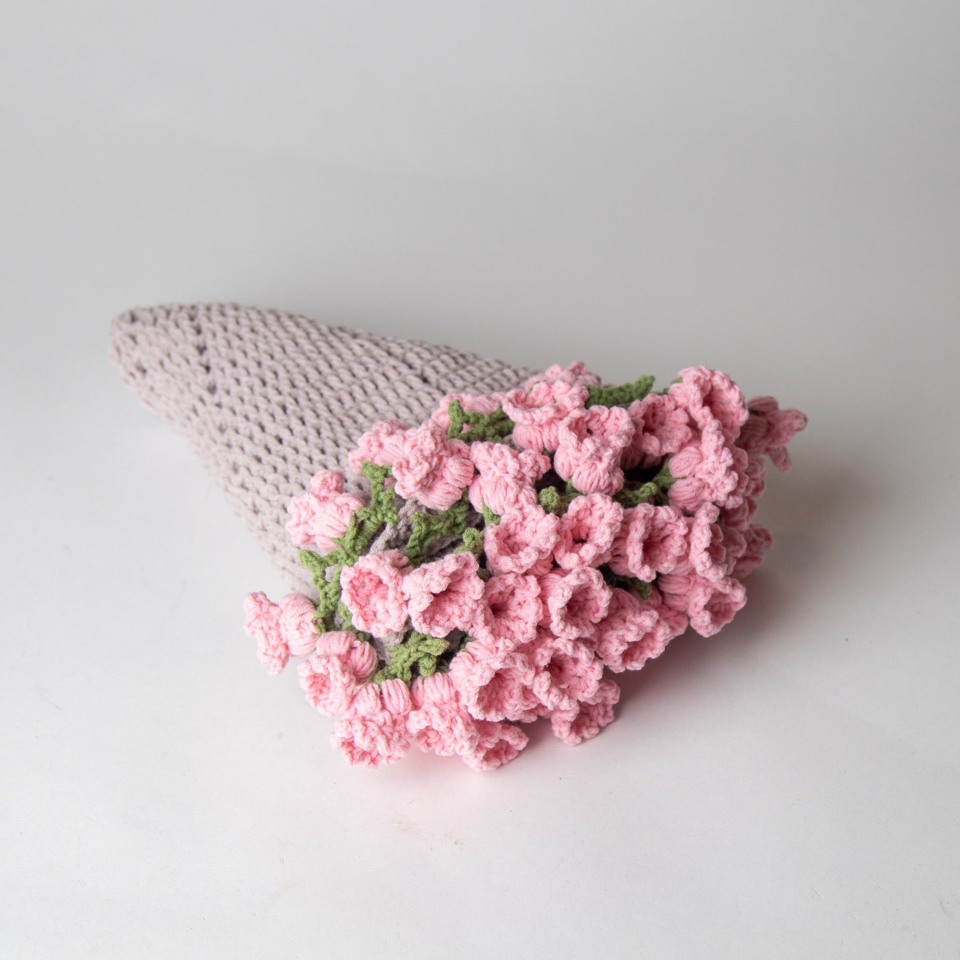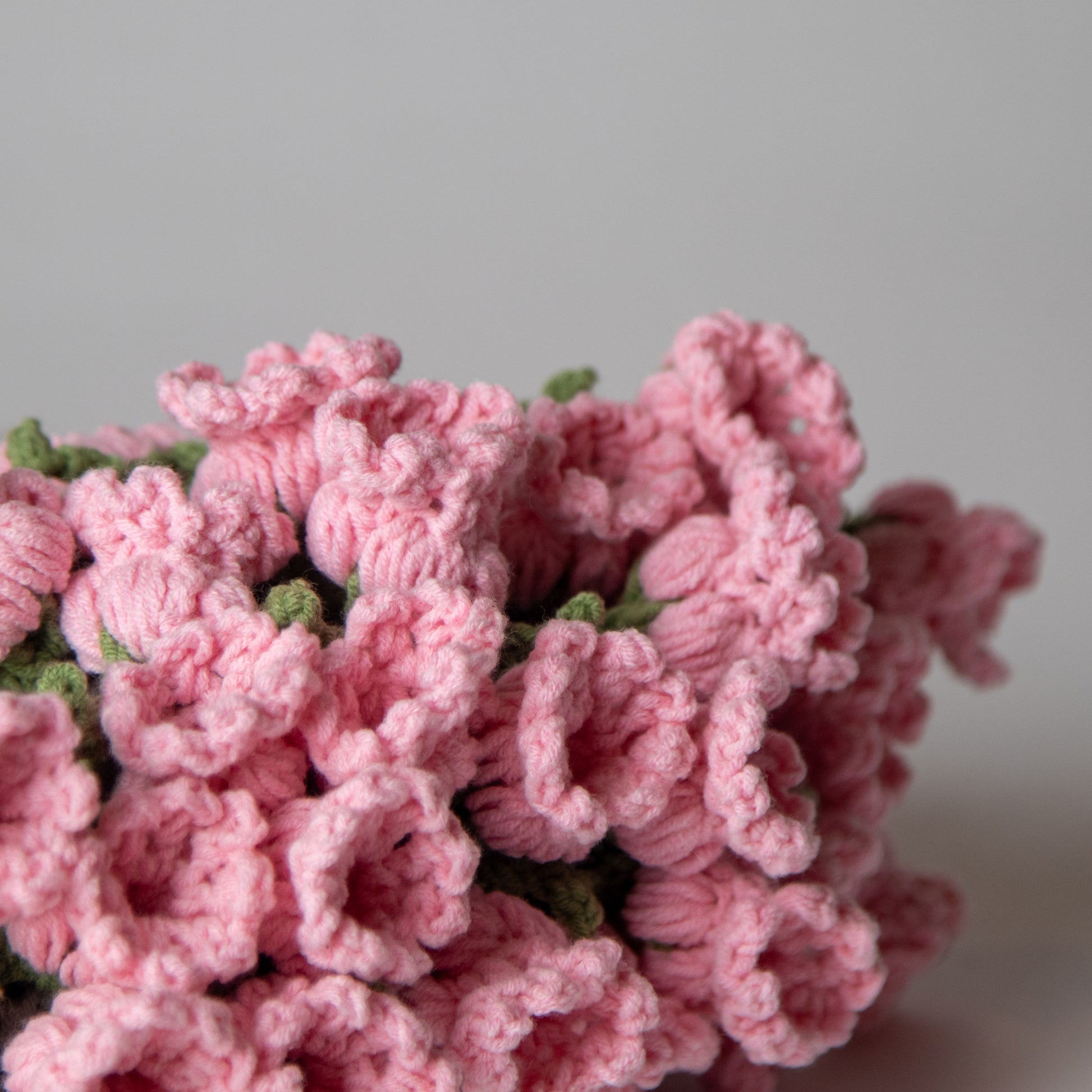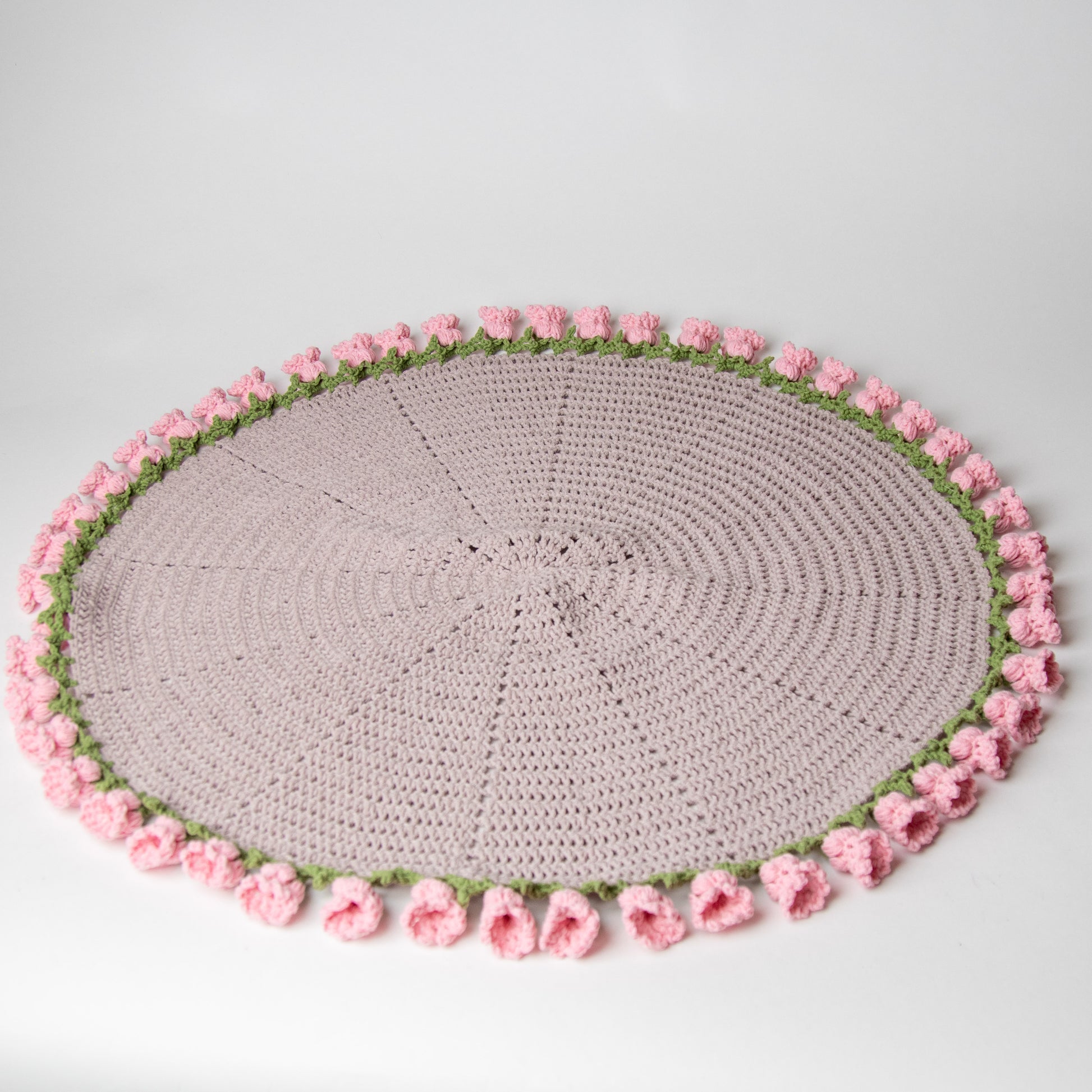 مفرش باللون البنفسجي الفاتح مع ورود التوليب الوردية بالكورشيه
