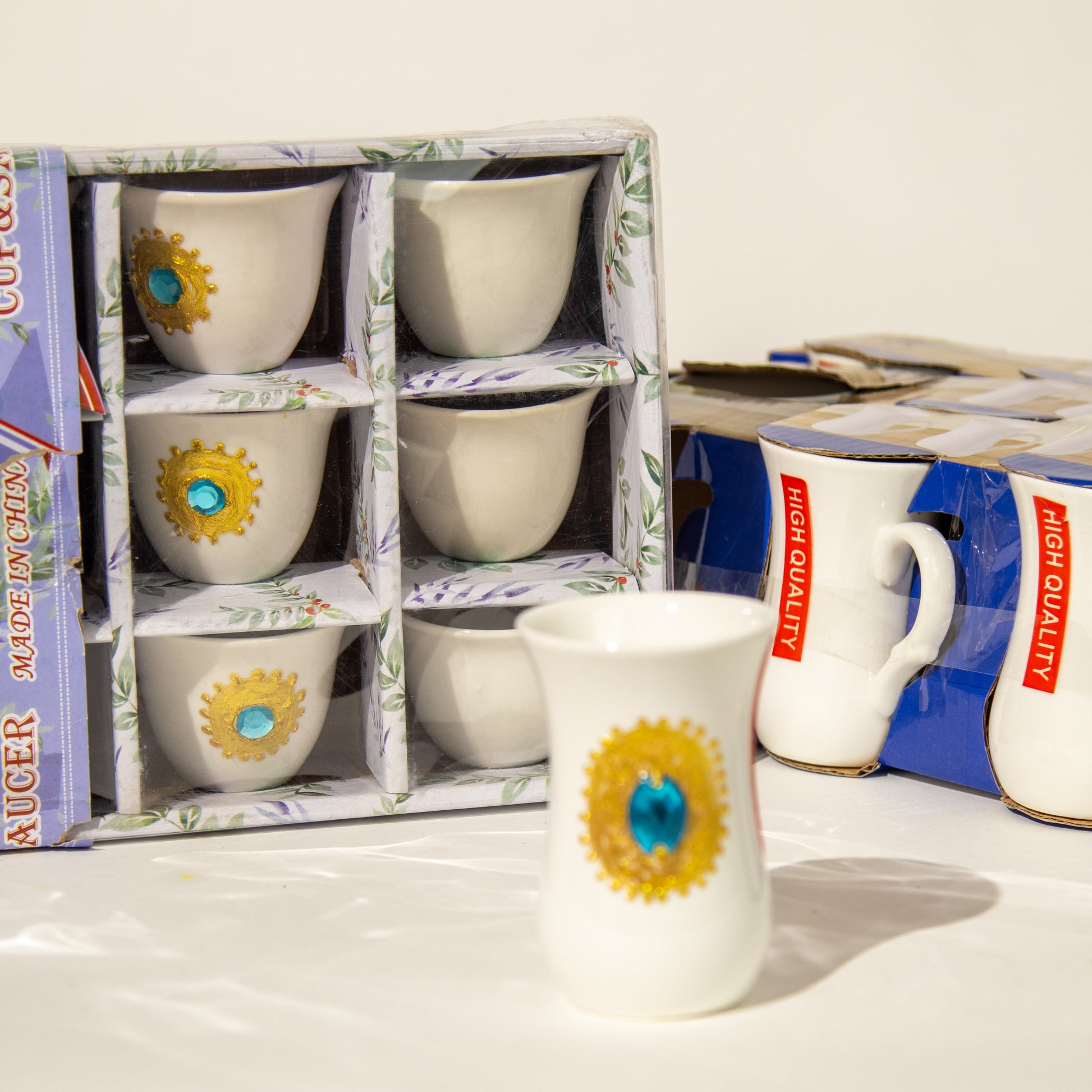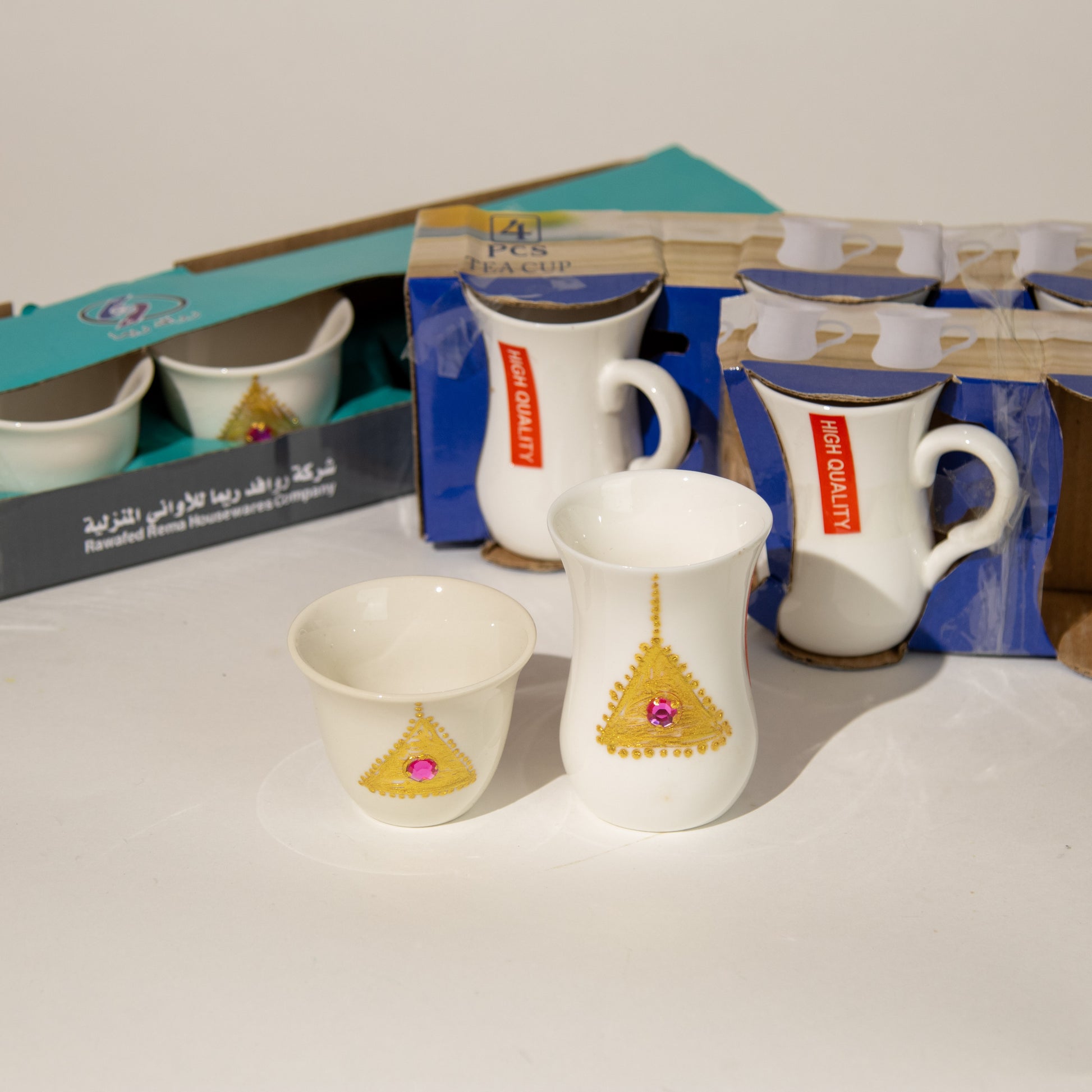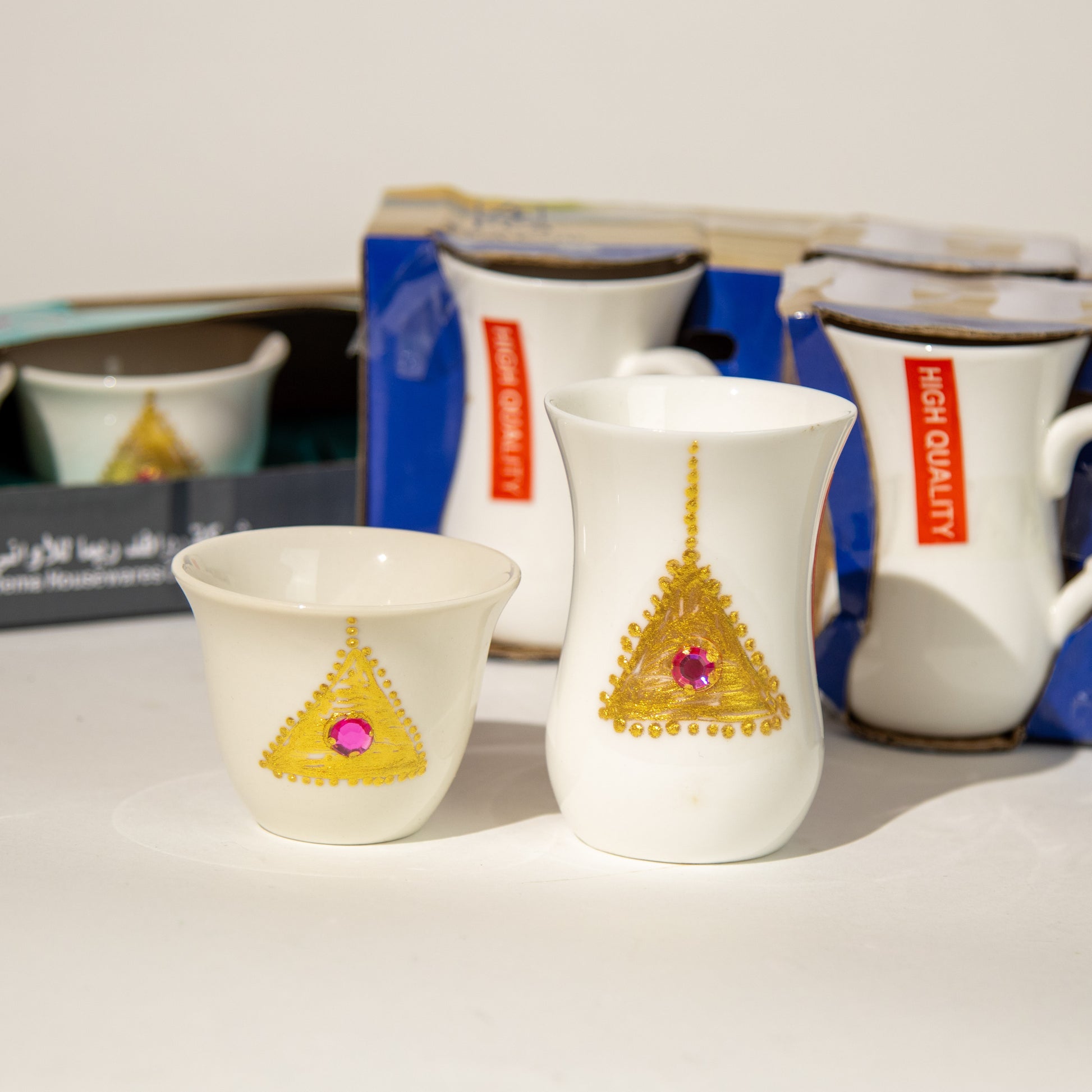أكواب الشاي والقهوة بنقشة الذهب