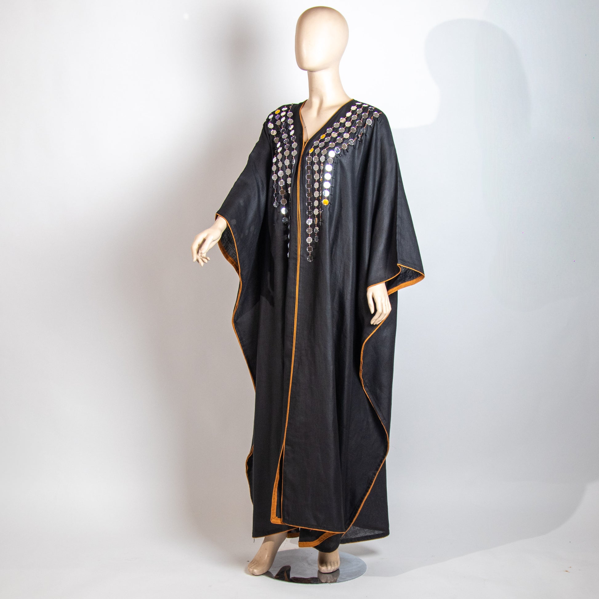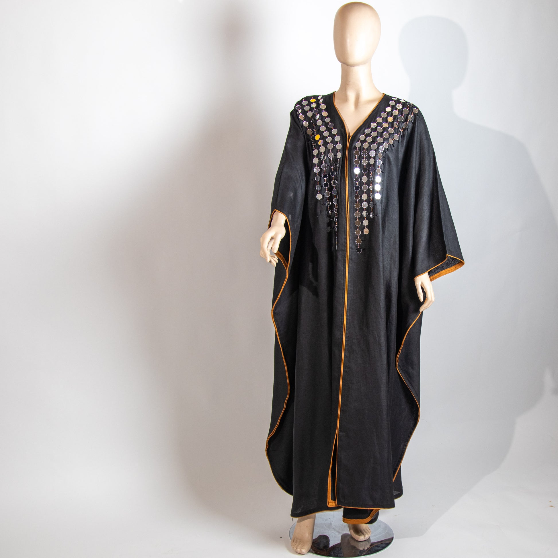 جلابية من اللينن الراقي الاسود قصة الفراشة مع مرايا فالامام