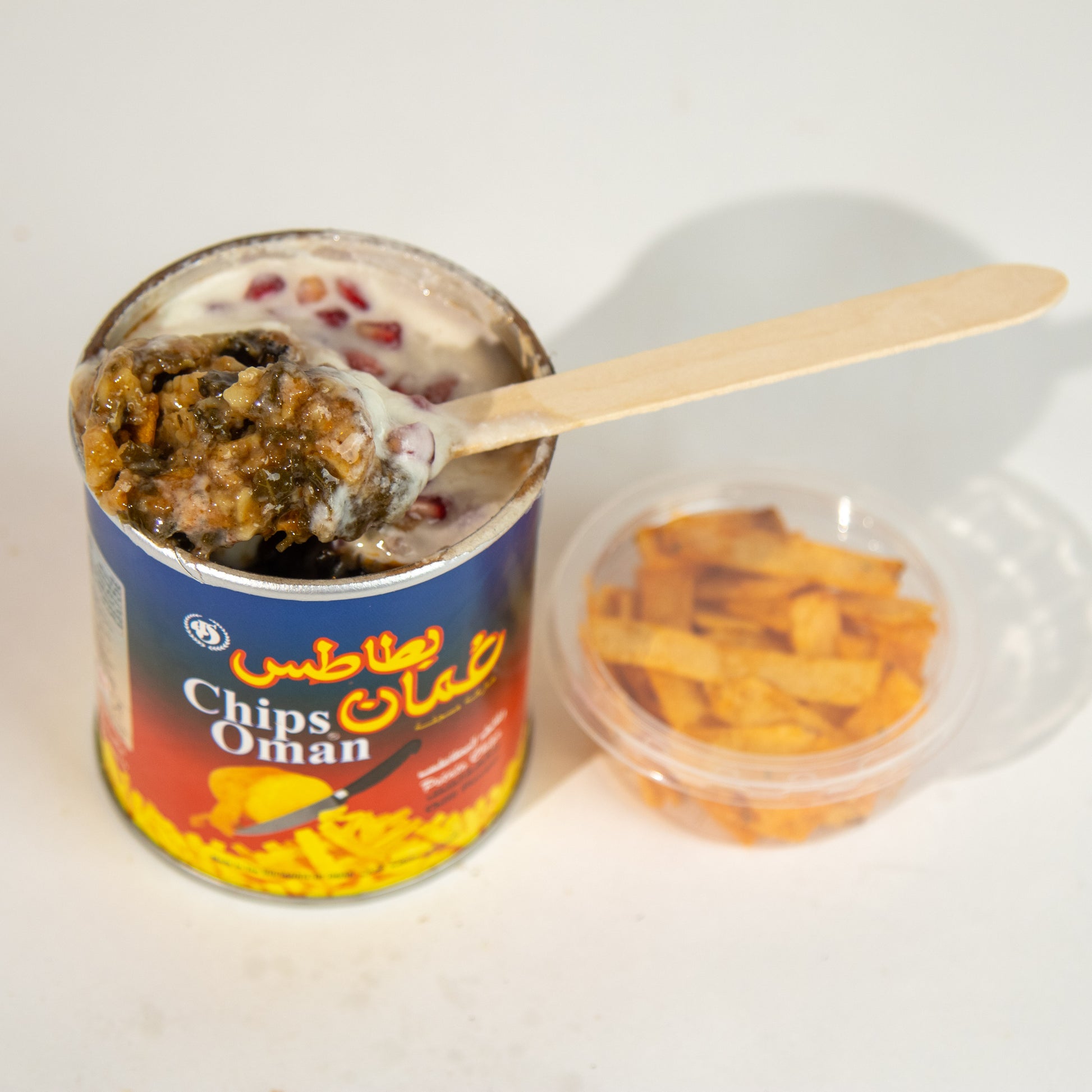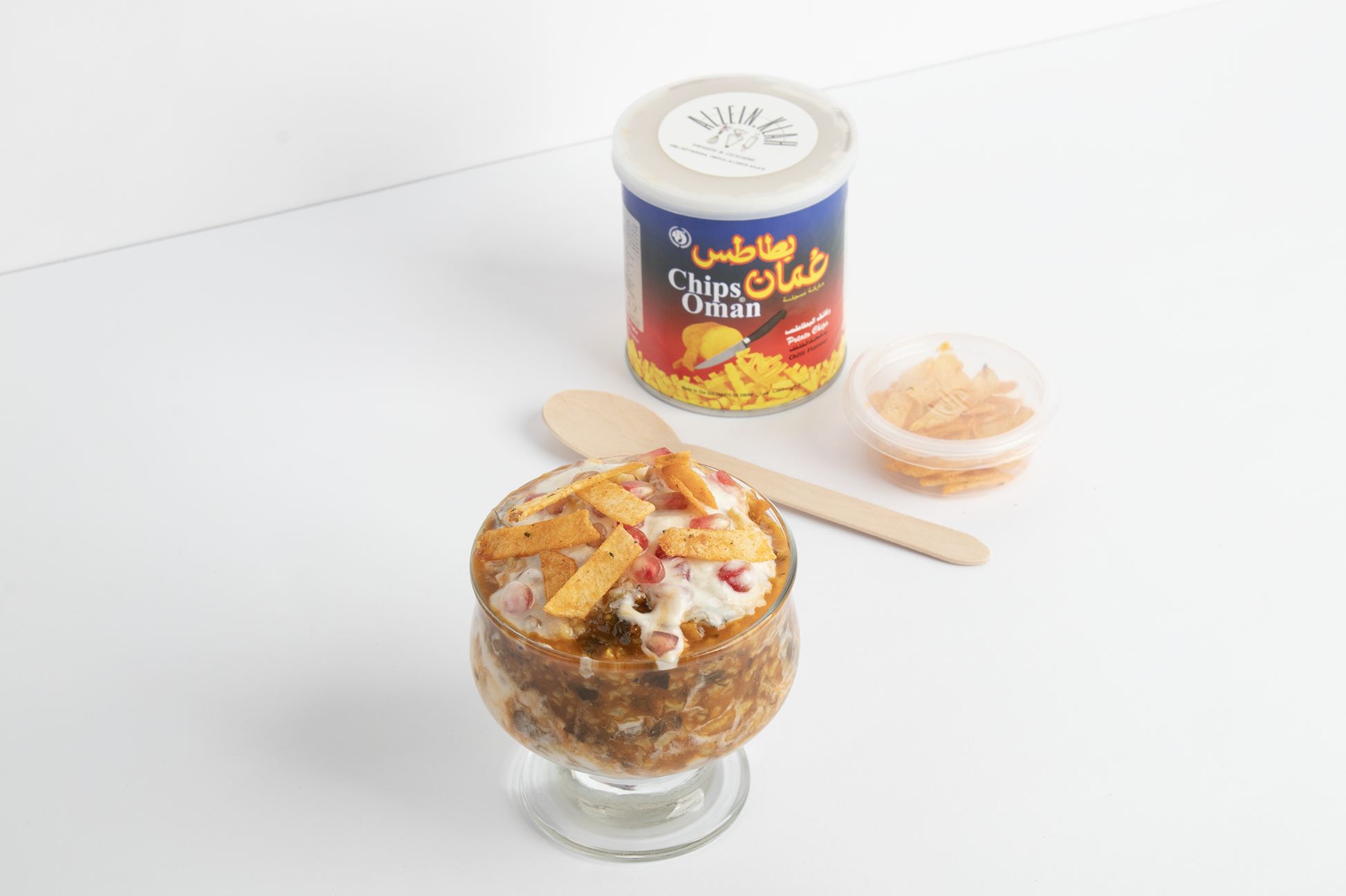 فتة لذيذة تعرض بطريقة مبتكرة في علبة شبس عمان