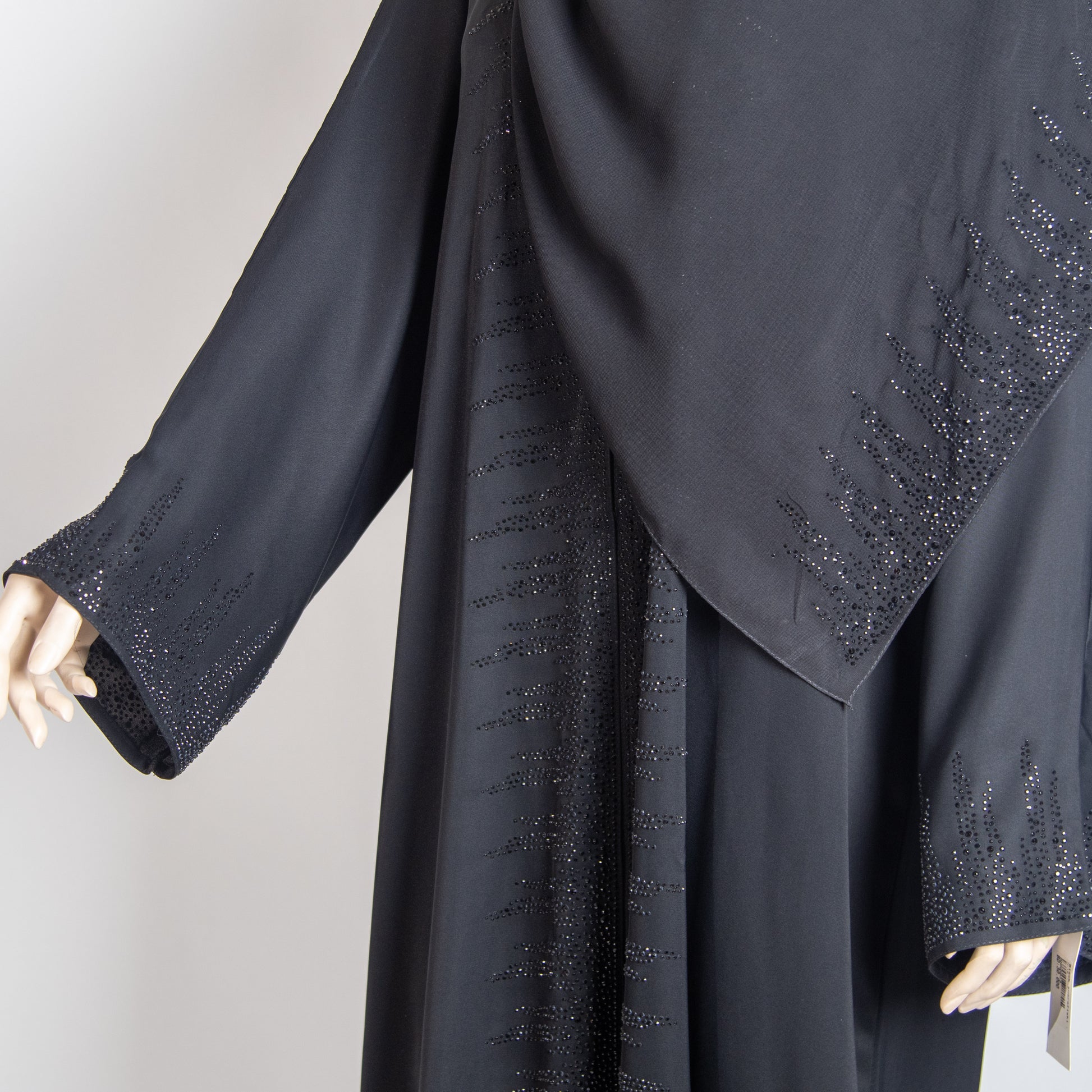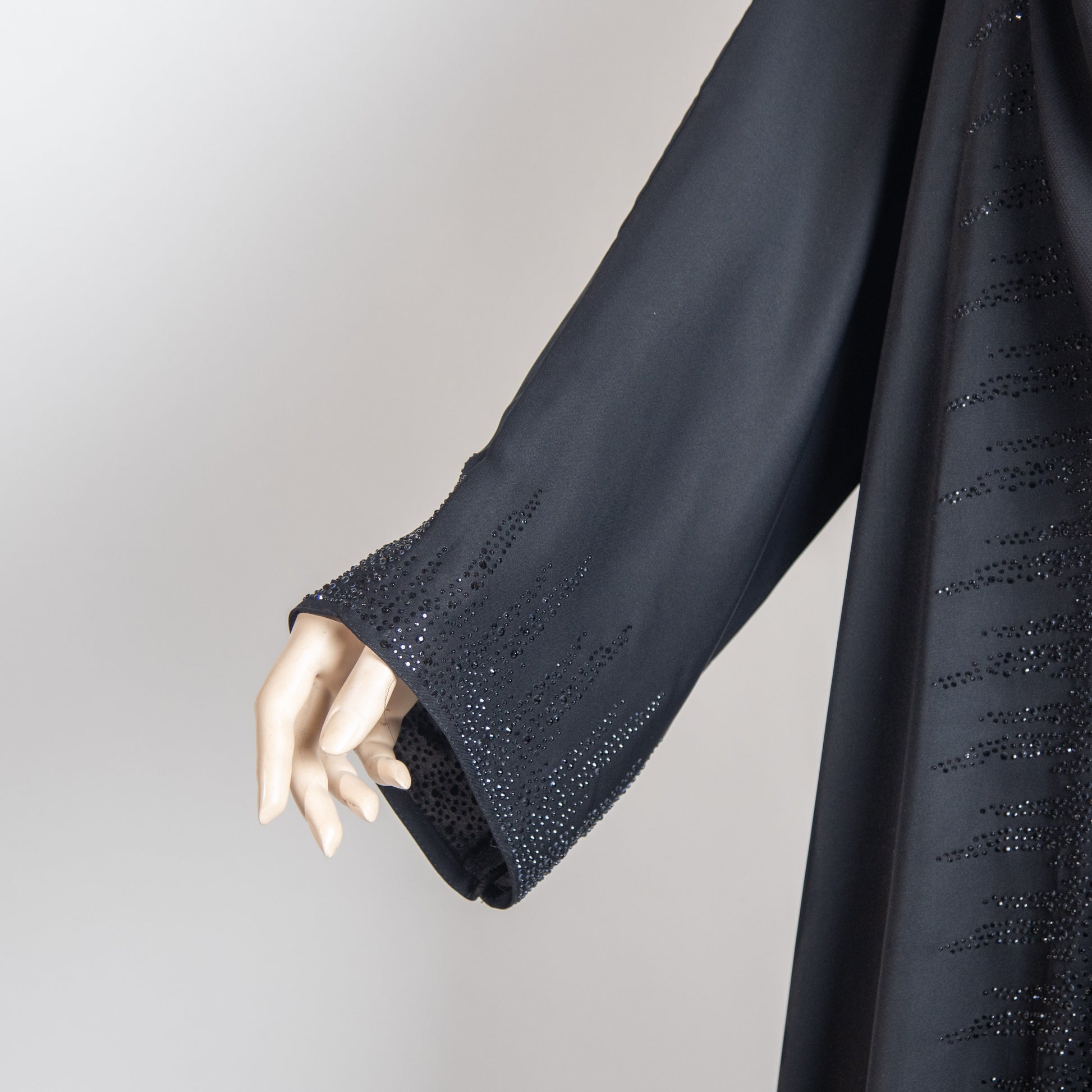 عباية صيفية باللون الأسود مع فصوص سوارافسسكي بالأمام