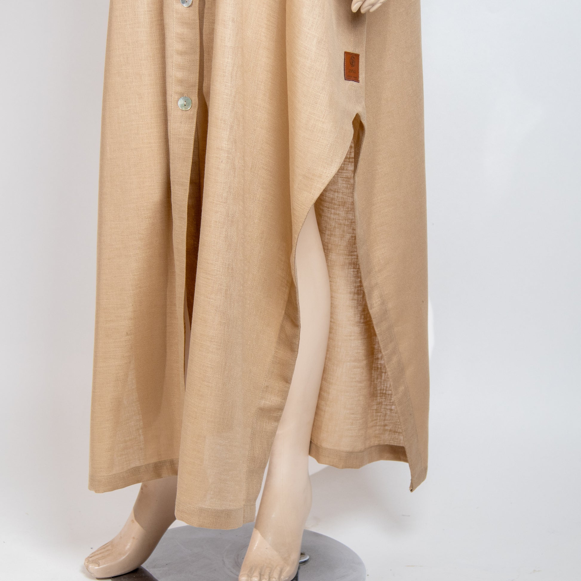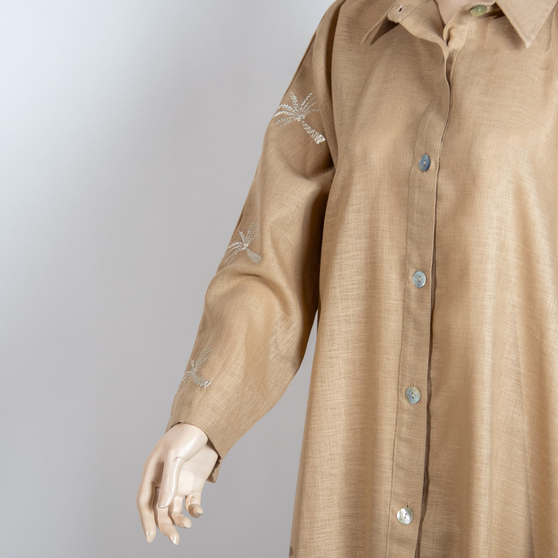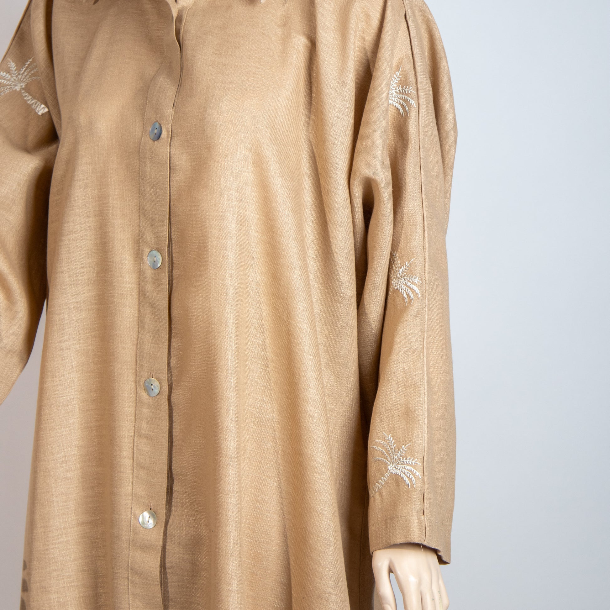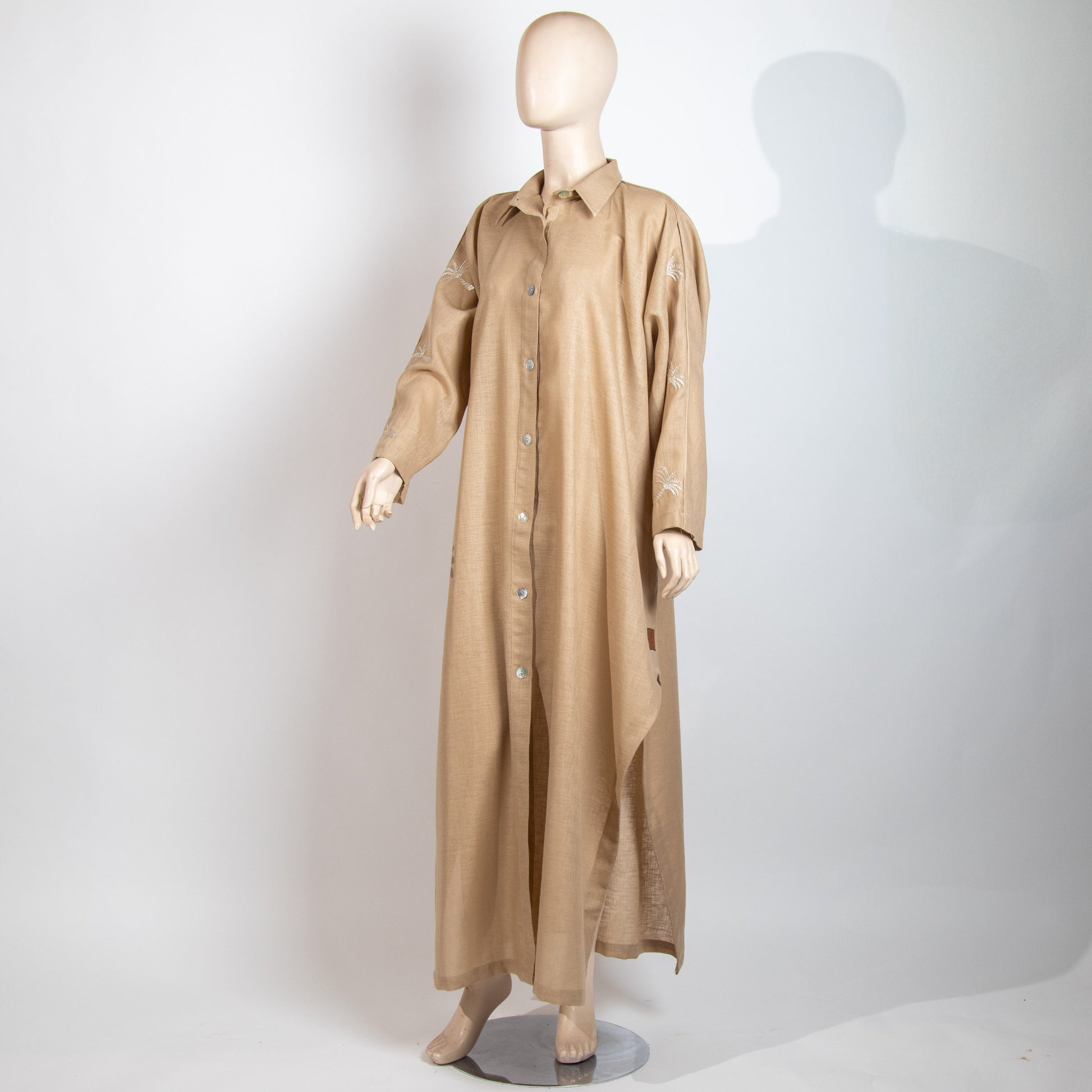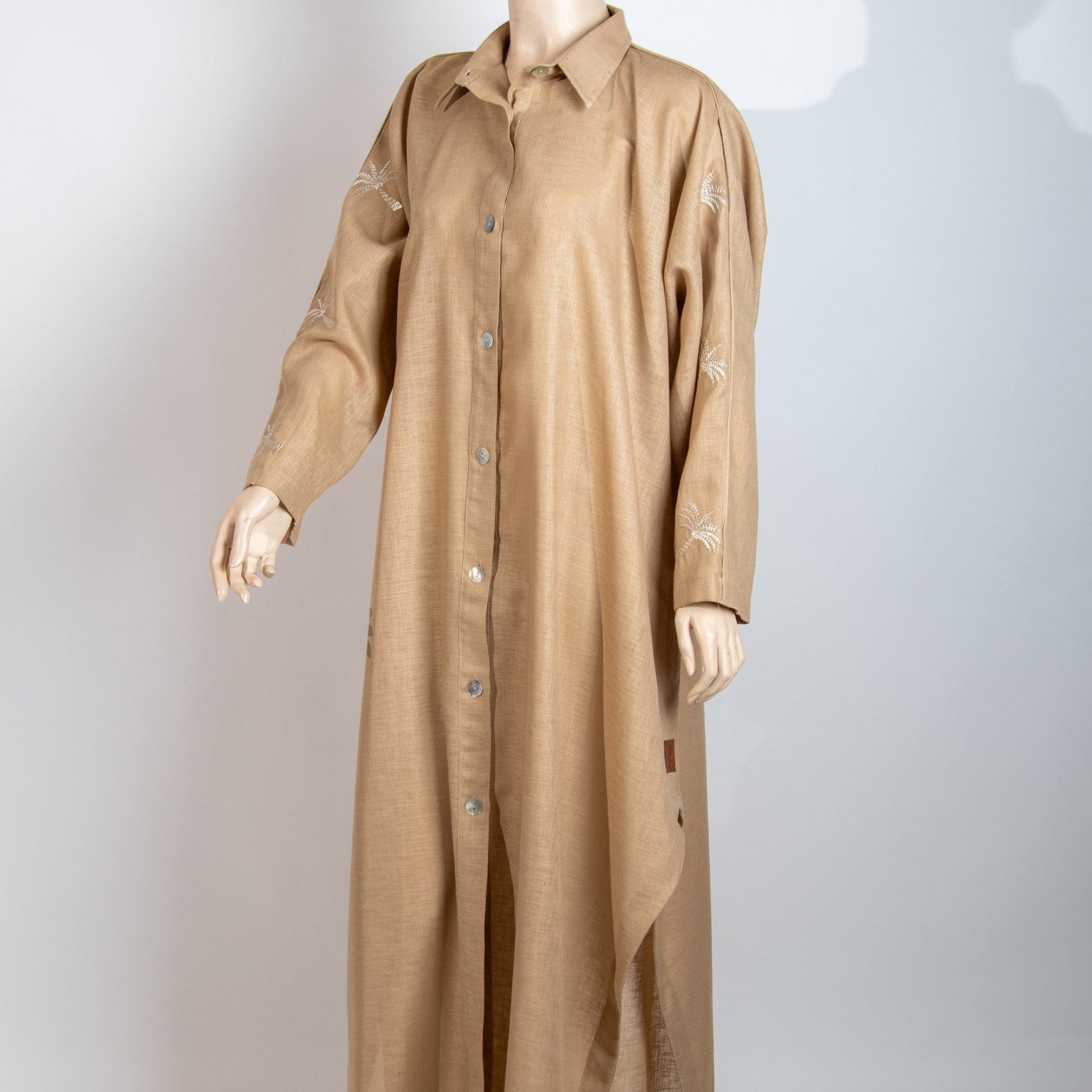عباية صيفية بقصة القميص مع تطريز يدوي راقي اللون البيج
