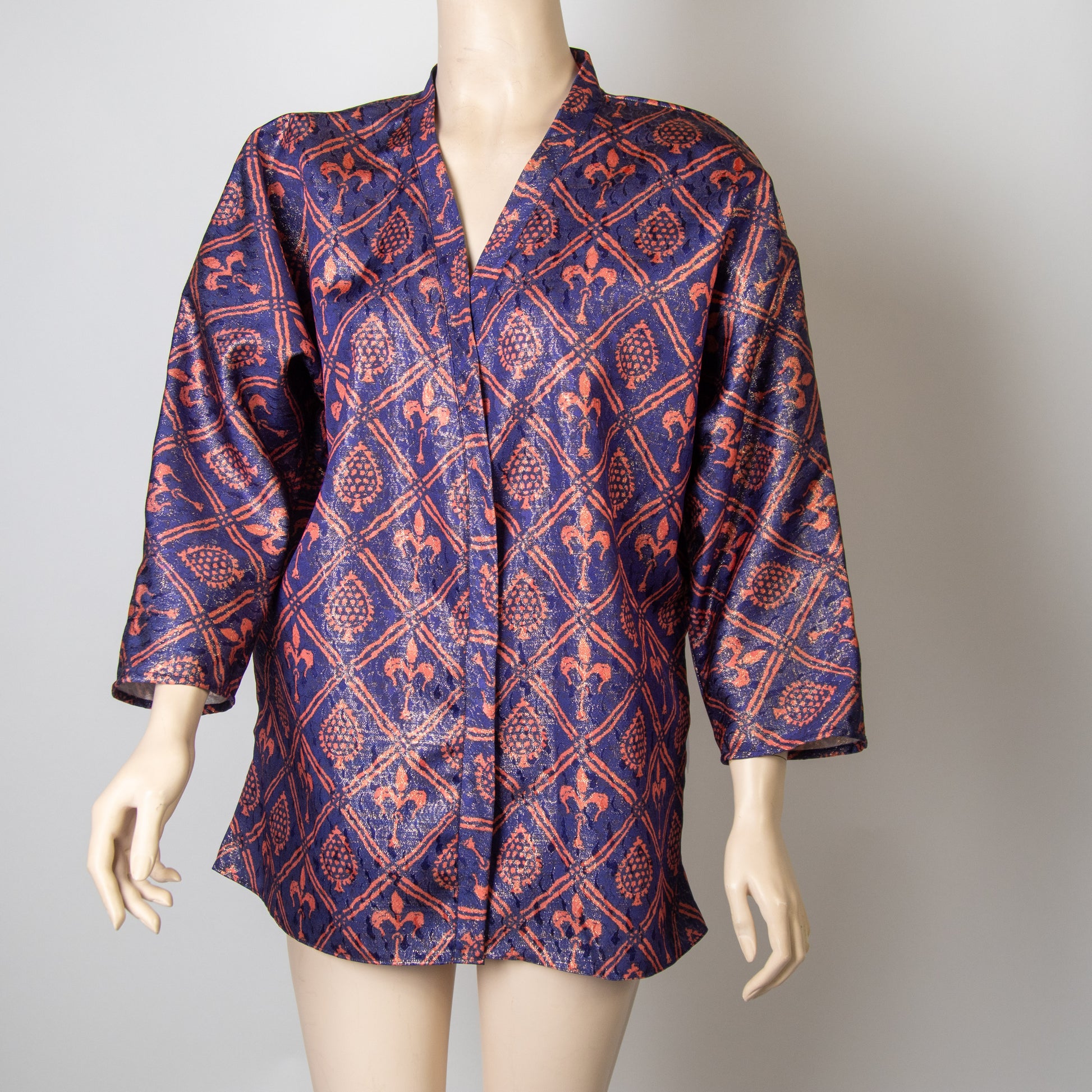 قميص راقي باللون الكحلي/ بقماش حرير هندي