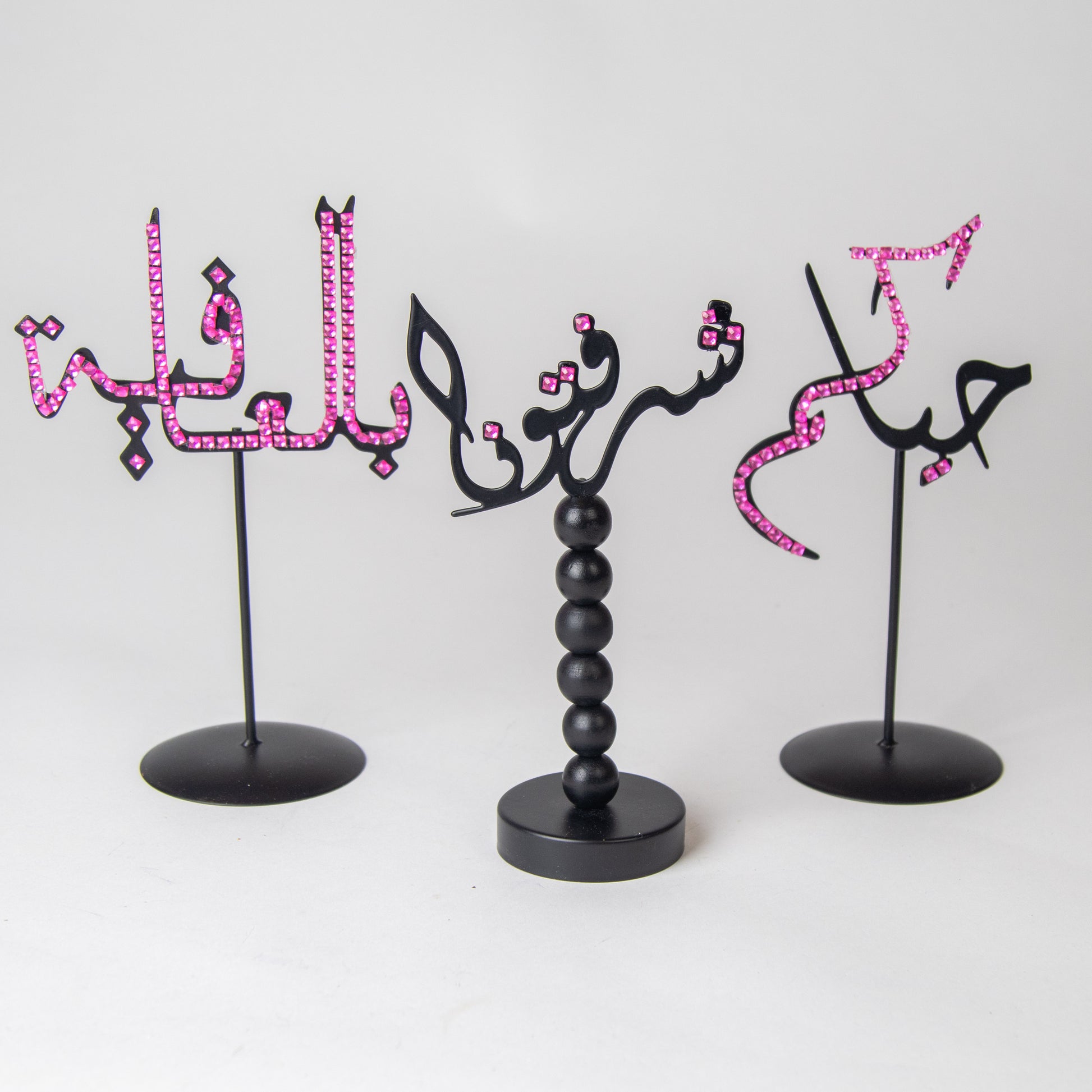ستاند ترحيبي مزخرف بالفصوص الوردية