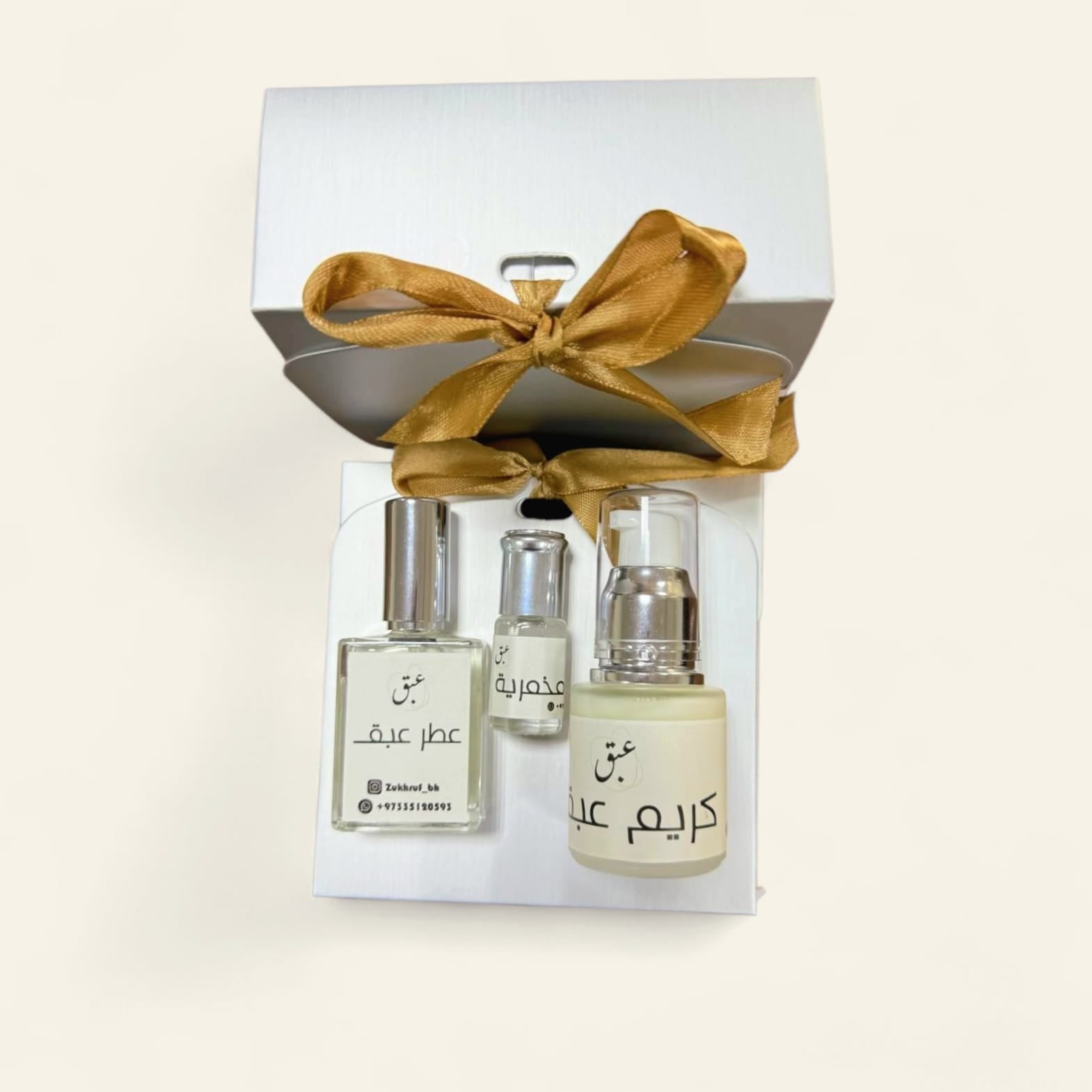 يحتوي على: عطر 8 مل و مخمرية ربع تولة و لوشن 20 مل
