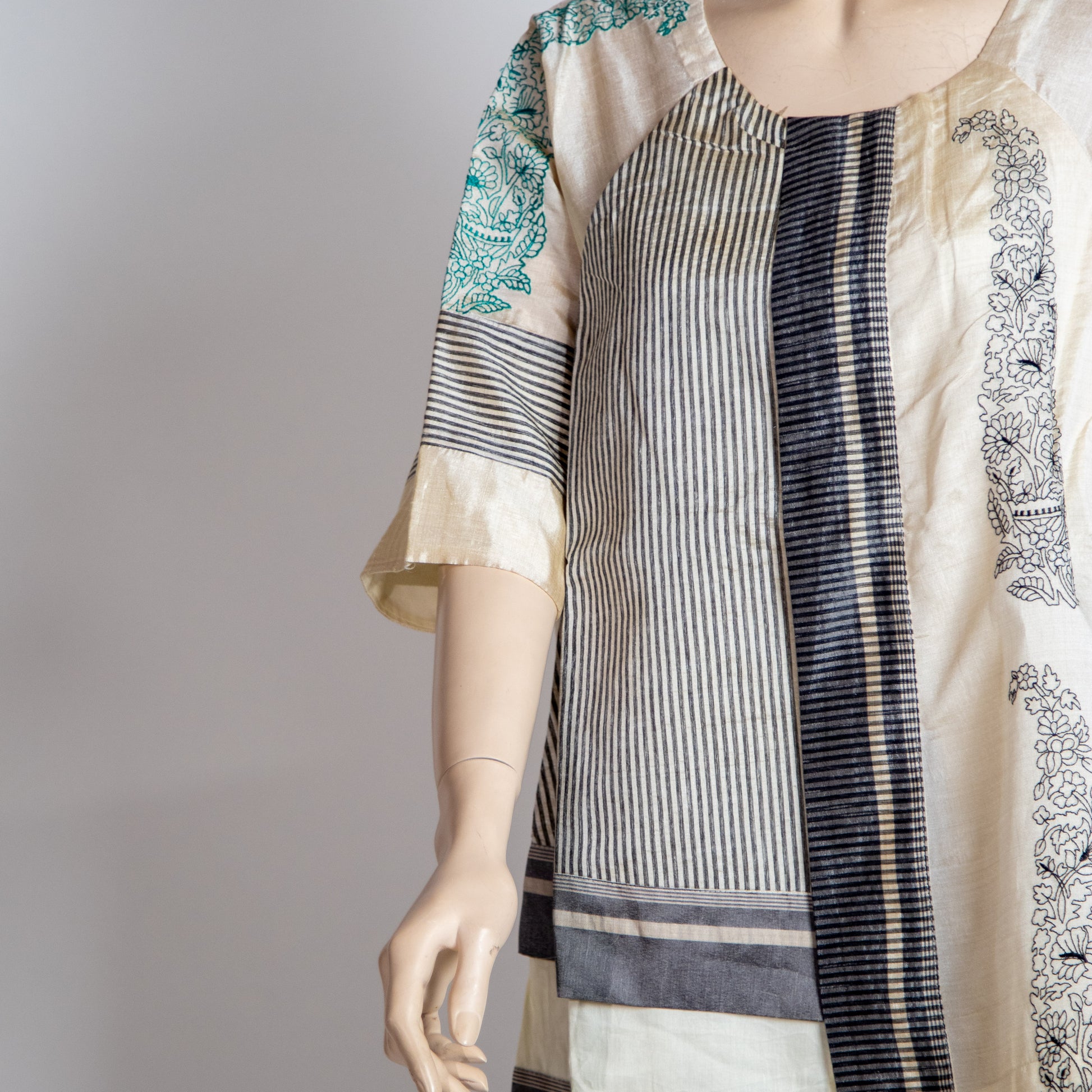 باللون البيج مع نقش باللون الاسود مع الاخضر